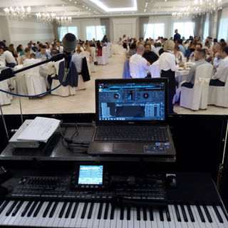 Inoltre, il servizio include momenti di karaoke per gli invitati e l'uso di attrezzature professionali, come il sistema di proiezione che permette di visualizzare i testi delle canzoni su un maxi schermo, rendendo l'atmosfera ancora più coinvolgente e festosa. E per chi ama ballare, Fabrizio offre anche un vasto repertorio di hit degli anni '70, '80, '90 e contemporanei, per garantire che tutti si divertano fino a tarda notte.